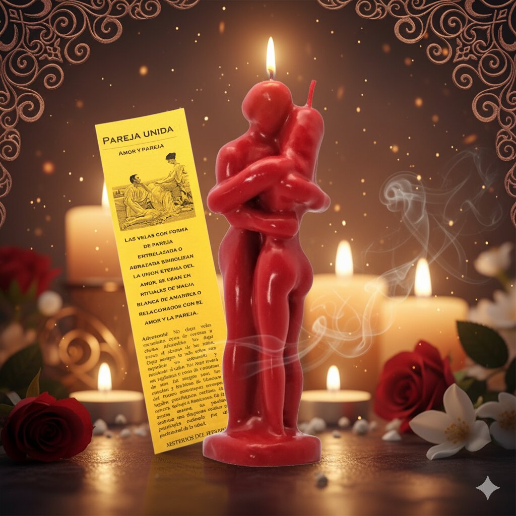 Las velas con forma de pareja entrelazada rojas, son las usadas en amarres de magia blanca, endulzamientos fuertes y uniones de pareja.